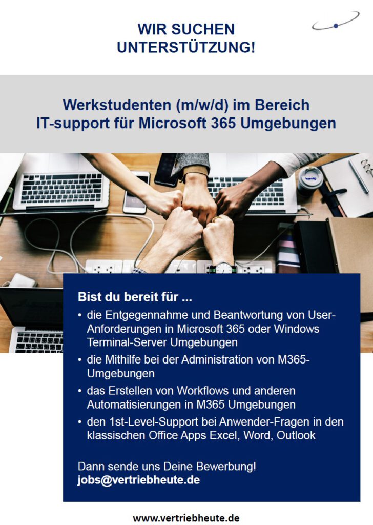 - Praktische Grundkenntnisse in der Administration von M365 von Vorteil